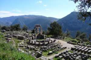 午後アポロンの神託で知られるデルフィの考古遺跡にて、アポロン神殿、劇場などを見学し、博物館にて輝くブロンズの「御者の像」などを見学します。